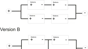 ich habe ein kleines Problem zu melden und ich hoffe auf Ideen von euch. Ich hatte in MANni 4 x 108AH Dual Use Batterien von Vetus (Jachtzubehör) verbaut. Diese waren nach Version A (siehe Bild) angeschlossen.