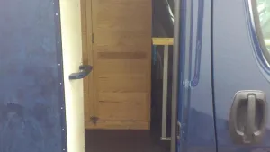 indem ich die vordere WC-Tür und die vordere Küchenschrank-Tür aufklappe, was dann hinter den Fahrersitzen eine geschlossene Wand ergibt.