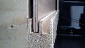 Die Schiebetür find ich auch super, im ersten Moment hätte ich aber gedacht, Du hättest es noch einfacher gelöst: Einfach mit der Kreissäge zwei Nuten in den Vierkant gesägt - wäre das nicht gegangen? So habe ich mir mal eine Schiene für eine einfache Besteckschublade gemacht (wo wir wieder beim Anfang sind...)