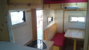 In Ami-Pickupkabinen gibt es of eine U-förmige Seitensitzgruppe. Die ergibt ein Bett. Oben drüber siehts aus wie ein Hängeschrank, man kann das Teilaber runter klappen und erhält ein 2.Kinderbett.