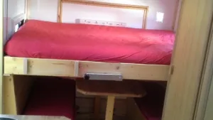 Das zeite Bett ist zum herunterlassen über der Sitzgruppe. Liegt dann auf dieser auf und man braucht nicht das Bett umbauen.