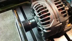 Und noch ein Bild vom Alternator bei dem ich das Puli ca. 10mm weiter weg vom Alternator in Form von einer Büchse ( gedreht, eingepresst und verschweisst ) montiert habe um das Ganze besser montieren zu können......mal abwarten ob das Lager mitmacht...