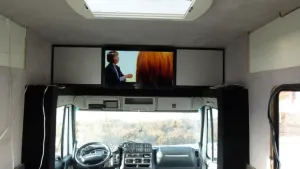 Im Führerhaus hat sich auch einiges getan: nachdem mein geliebter Becker-Mexico sich nicht mehr regeln ließ, habe ich mich nach Alternativen umgesehen und im Blaupunkt New-York 800 (ohne Navigation) eine tolle Lösung gefunden. Zusammen mit neuen Lautsprechern in den Original-Ausschnitten und einem Subwoofer in der Sitzbank ist der Klang genial. Durch die vielen Anschlußmöglichkeiten kann man auch den Fernseher anschließen und so den lauen Klang von LCD-Fernsehern aufpeppen. Zudem hat er eine vollwertige Fernbedienung und kann dann auch vom Wohnraum aus bedient werden.