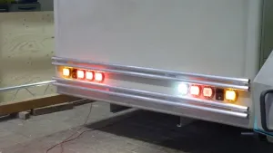 Die LED-Rückleuchten sind montiert und eine Stoßstange aus Aluminium geschweißt, diese ist Schutz für die Lampen und Griff für die Klappe zugleich.