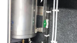 Der Boiler hat seinen Platz im seitlichen Kofferraum gefunden, direkt neben der WEBAST-Thermo 90 ST.