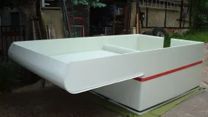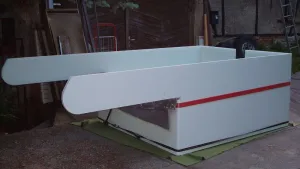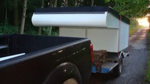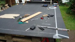 Nachdem ich im vergangenen Winter und Frühjahr viel hier gestöbert habe, holte ich am 29.04. 2011 die dort auf Maß bestellten MonoPan-Platten ab und begann am folgenden Tag mit dem Kabinenbau. Die Konstruktion ist eine Hubdachkabine komplett aus Monopan-Platten! Diese wurden unter freiem Himmel mit einer guten! und regelbaren Heißluftpistole verschweißt und nach Fertigstellung der Rohkonstruktion nochmals mit einem Handextruder nachgeschweißt.