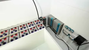 Diese Woche haben wir die Servicebatterien eingebaut. Was für eine schweißtreibende Angelegenheit! Knapp 1000kg Enegiespeicher in Form von 12 Stk. 2 Volt Zellen.