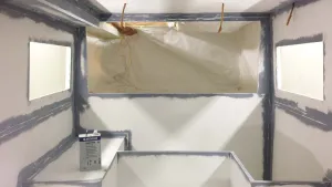 Das Bild zeigt den Innenraum nach dem ersten mal füllern und schleifen.