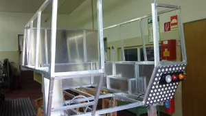 Ich habe es lediglich waagerecht eingebaut und die Stangen gehen durch die Seitenwand der Kabine in die passend angefertigten Gegenstücke,