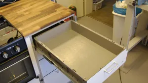 Danke, Volkmar, das sieht ja wirklich supereinfach aus (wenn man mal von der Fummelei absieht, alle 16 Auszüge komplett parallel auszurichten, aber ich habe weniger Platz aufgrund eines Backofens, wo dann die Truma 4 drunter soll = es gibt nur eine Reihe Kisten, also 8 Auszüge...) — das werde ich für unsere Küche mal nachbauen.