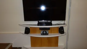 Aber er passt sehr gut auf das Sideboard. Auch der Bluray-Player hat sein Plätzchen gefunden.
