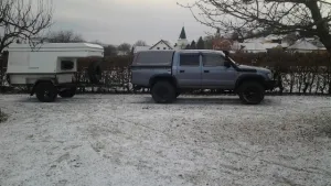 So stelle ich mir das mit Offroadwohnwagerl ca. vor, nur halt ohne Deichselbruch oder ähnliches.