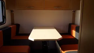 Den Tisch kann man sehr gut erreichen, da die Sitze verstellbar sind.