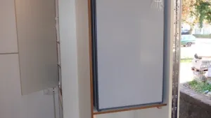 Den Kühlschrank möchte ich vorerst noch nicht mit einer Außenbelüftung ausstatten. Hierzu gehen ja die Meinungen auseinander. Ich versuche das erst mal mit einer guten Innenbelüftung zu realisieren. Noch bin ich guter Dinge, den Ausbau dieses Jahr fertigzustellen. Und die milden Tage habe ich genutzt, einige Klebungen durchzuführen. Nicht alles werde ich schaffen zu kleben, bevor der Winter kommt. Aber dann muss ich halt heizen...