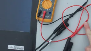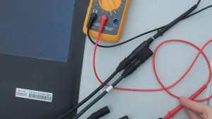 Sobald ich das vierte Panel per Y-Verbinder zusammen mit den bereits anderen 3 Panels parallel verbunden habe, sinkt die Spannung auf ca. 9 V ab.