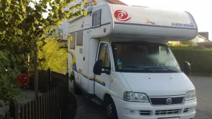 ich möchte Euch auch einmal meinen Neuen vorstellen - zu meiner Schande ein Joghurtbecher, aber einer, der viele meiner must-have's (Doppelboden, Hecksitzgruppe, Dusche, geräumiger Alkoven) wenigstens weitgehend erfüllt... Da sich das mit dem Individualbau meiner Urlaubskabine immer wieder verschiebt (manchmal durch mich, manchmal durch höhere Gewalt wie Hochwasser etc.), habe ich mir ÜbergangsLÖsung zugelegt, denn ohne ein Urlaubsmobil geht's einfach nicht mehr weiter.