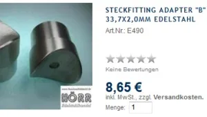 vielen dank! laut katalog gibts das teil leider nur für 40mm-rohr. das wäre mir zu fett. ich schreibe die aber mal an, vielleicht kommt dann da noch etwas anderes raus.