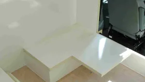 mein Alkoven ist nur für Gepäck. Er ist innen ca 60 cm hoch. Wenn Du im Alkoven schlafen willst, mußt Du natürlich höher bauen. Dann wird auch das ganze Auto höher und Du hast entweder sehr viel Innenhöhe oder einen Doppelboden. Restler hat einen Schlafalkoven auf Transit. Der kann dazu sicher mehr sagen. Zum Boden: Wenn Du keine Holzplatte im Boden hast, wirst Du wahrscheinlich noch eine auf den Sandwich drauflegen? Sonst wäre ich nicht sicher, ob 1,5 mm GfK die Punktbelastung durch das Laufen auf die Dauer aushält und auch die Befestigung von Möbeln und Technik wird schwieriger. Hast Du keine Holz- oder Aluverstärkung im Boden dort, wo er mit dem Fahrzeugrahmen verschraubt wird? Irgendeine Verstärkung brauchst Du da, die verhindert, daß die Schrauben den Sandwich zusammendrücken und ausbrechen.