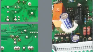 Die Flußmittelrückstände kommen wohl daher, dass da schonmal jemand nachgelötet hat.