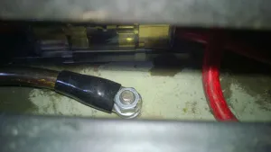 Massepunkt zum Rahmen Verbraucherbatterie - btw. Im Hintergrund sieht man den Verteiler der Stromführenden Leitung (Plus)