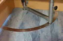 Ich habe ja im Prinzip den gleichen Unterbau, nur eine gerade Stange statt dem Schwanenhals. Ich habe gegen die Abnutzung des Bodens eine bogenförmige Schiene aus Edelstahl vom netten Schlosser im Dorf machen lassen. Auf der kann der Teil, der über den Boden schrappt, wenig Schaden anrichten.