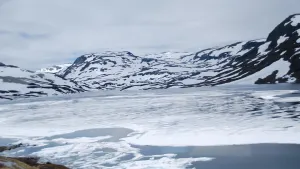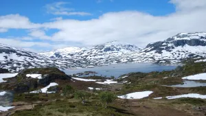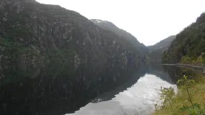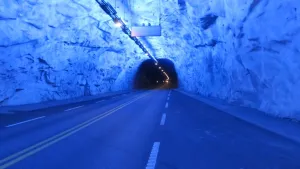 Es ging weiter nach Norden über Voss und dann durch den Laerdal Tunnel was auch echt Gigantisch ist wie überhaupt die ganze Natur in Norwegen, überall gibt es Seen, richtige reißende Flüsse, Waserfälle und Schnee in den Bergen.