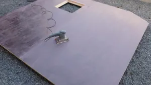 Die Birkensiebdruckplatten sind 9mm, das Fachwerk 4cm, die Isolierung somit auch 4cm. Am Dach und am Boden wird sie etwas dicker. Nicht aus Isolationsgründen, sondern konstruktiv bedingt.