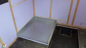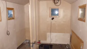 so, Duschwanne is drin, Trennwand ist teilfertig, es geht vorran! :D