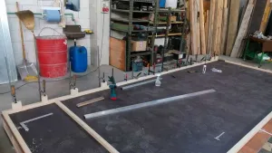 Mit meinem Schreiner haben wir zusammen alle nötigen Platten u. Kanthölzer für die Bodenplatte hergestellt bzw. zurecht geschnitten und an den Rändern genutet. Das zusammenfügen verlief ganz gut... . ...wenn es da nicht gleich ein "shit happens" gegeben hätte (dazu aber mehr das nächste Mal; ist nicht kritisch, war mein Fehler).