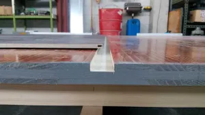 Ach ja... ...und die Nuten in den oberen Platten war eigentlich nicht vorhergesehen. War eigentlich ein überfllüssiger Fehler da wir nicht mitgezählt haben wie viele Platten denn genutet werden müssen. Dann haben wir schon zwei Platten zu viel genutet und haben uns dann für "alle nuten" entschieden.