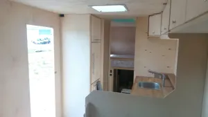 In dem Fall die Scharniere und die Gasdämpfer. Na gut, wird morgen nachbestellt...Beim Bau der Hängeschränke kam es wie so oft ein bischen anders als geplant. Somit ergab sich das der Hängeschränk der Rundsitzgruppe auf der rechten Fahrzeugseite (noch) nicht gebaut wird, und wenn, dann wird er eher schmal ausfallen. Das aus dem Grund weil er sonst zu sehr in den Raum ragt und diesen sehr einengt. Das wollen wir nicht.