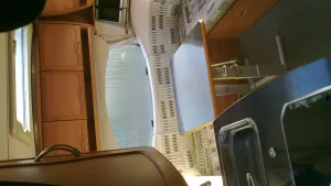 Der Seiten- und der Heckschrank endeten ein Stück vor der Ecke, und da die Schränke nicht ganz senkrecht lagen, ergab sich hier so eine Art nach unten öffnender Trichter. In der Ecke befanden sich zwei kleine Boards, und oben - unsichtbar - war ein kleiner Downstrahler eingebaut. Der hat diese Ecke sehr freundlich beleuchtet und zudem gleichzeitig als absolut blendfreies Leselicht beim in-die-Ecke-knäulen fungiert.
