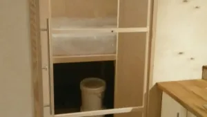 Achso, noch vor den Klappen, noch vor Neujahr, habe ich einen Grauwassertank aus Resten der Siebdruckplatten gebaut. Erstens weil grösser als der vorübergehende Vorgänger, und zweitens weil ich den kleinen 50l Vorgänger eigentlich als Urintank für die TTT geplant habe. Dieser hat nun auch schon seinen neuen Einbauort bekommen.