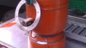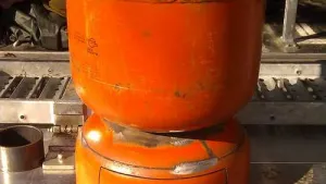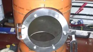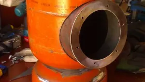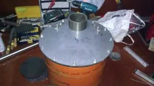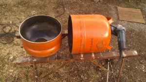 Unser Feuerstern ist gross genug das wir einen Platz für einen Holzofen schon von vorn herein planen können. Weil unser jetziger eigentlich schon einen neuen Besitzer hat muss ein neuer gebaut werden. Und diesmal wurde eine Gasflasche "geköpft". ![]()