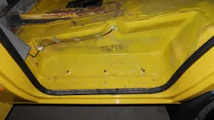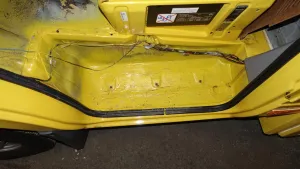 Unter den Bitumenmatten haben wir bisher nur am Rand Rost gefunden, und das auch nur da, wo schon jemand rumgefuscht hat. Darum werden wir die Platten nicht vollständig entfernen. Freitag werden Lack und Rost mit (politisch korrekten) CSD-Scheiben entfernt, dann folgen mehrere Gänge Rostumwandler, anschließend gibt es eine Ladung Owatrol und eine Lackierung mit Brantho Korrux "nitrofest" und "3in1". Bevor wir dann die Dämmung und die Fußmatte wieder montieren, gibts noch Liquid-Film in die Hohlräume. Damit sollte dann das Schlimmste erstmal erledigt sein.