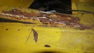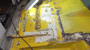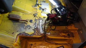 Beim entrosten im Fahrerhaus haben wir doch noch reichlich mehr Rost gefunden, dem wir nun zu Leibe rücken.