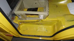 Ich habe mich dann doch einfach getraut, die Konsole vom Fahrersitz leer zu räumen und auszubauen, da sich darunter das ein oder andere grösßere Rostnest versteckt hat.