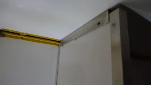 Nein, soweit sind wir noch nicht. Ich meine die schwarzen Kunststoffschienen auf dem Boden. Die sind, wahrscheinlich konstruktionsbedingt) alle so arg verrostet, dass ich keinen meiner Schraubenzieher zum packen verleiten konnte.