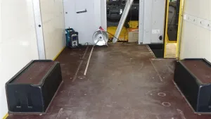 ...fette Gummimatten mit Textilflor liegen, wie sie im Winter vor den Geschäften liegen....und weil die Küche um die Ecke ist, davor auch....
