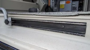 also, an meinem Malibu ist in der Trittstufe keine Schiene. Vorne an der Sitzbank habe ich auch nur ein Sperrholzplatte, die mit Filz überzogen ist.