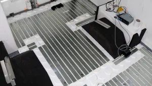 3. Ich verlege auf die Bodenplatte nochmals eine dünnere Schicht XPS (15-20mm), fräse entsprechend tiefe Kanale für die FBH in die selbige, verlege die Schläuche und letzten Endes den Bodenbelag drauf.