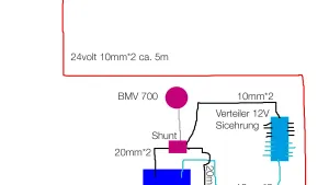 Auch so banale Dinge, wie den Kabelquerschnitt von der Lima zur Batterie oder die Klärung der Frage, ob die fette 210 soviel Eingangswiderstand hat, dass die Lima oder die Dioden das nicht schaffen, den zu überwinden.......