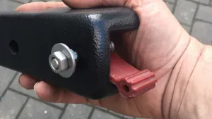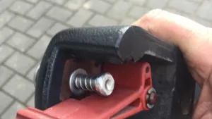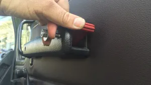 Nachdem auf der letzten Urlaubsfahrt unser kleinster (3 Jahre) fast bei 80 Km/h aus der Beifahrertür gefallen wäre ( ich habe ihn gerade noch am Arm erwischt) habe ich heute eine Kindersicherung für die Beifahrertür gebaut.