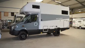 da war die Fa. Robel sehr verwundert wie wir damit kamen), 160 AH LIFePo von Greenpower), 300 WP Solar, MPP Votronic Solar Regler, 230 L FW und 140 L AW, 1500 W Votronic Wechslerichter, Votronic Ladegerät, Votronic Steuerpanell, Längsschläferbetten im Alkoven, Eno Hydra 2-Fl Gaskocher, 110 l Kühlschrank, Webasto Dualtop Evo 8, Maxview automt. Satanlage, Zusatzlufe an der HA, Snooper Ventura Wohnmobil Navi. Schiebetür zum Bad und das beste 2 zusätzl. eingetragene Sitzplätze auf der Hecksitzbank, Das war mit ein Grund warum wir mit der Fa. Robel handelseinig wurden.