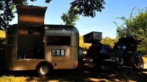 Ich wuerde als potentieller Raeuber um diesen "bekloppten" Typen mit riesigem Motorrad und noch groesseren Wohnwagen einen ganz grossen Bogen machen.
