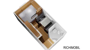 Die Heizung mit integrierten Boiler würde ich dann in die Sitzbank gleich bei der Dusche machen.