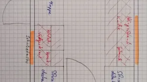 Also bei dieser Art Grundriß würde ich die Waschmaschine/Trockner-Kombi verschiebbar in die Dusche packen, ausziehbar in den Gang zum Fahrerhaus. Der deckenhohe Schrank käme auf die Fahrerseite nach vorne, dahinter die Tür, rechts angeschlagen - beides zusammen ist etwa genauso lang wie Deine Naßzelle. Dir stünde also der gesamte Bereich hinter der Dusche für Küche mit halbhohen Unter- und Hängeschränken und Wohnraum zur Verfügung - damit kann man etwas anfangen!