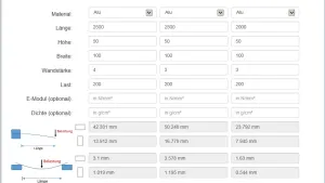 Mit Hilfe des Profilrechners konnte ich mich vergewissern, dass die Wandstärken (100 x 50 x 3 mm) meiner geplanten Alu-Aufbauten locker reichen.