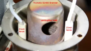 Ich hab mich jetzt bis zum Brenner vorgearbeitet und da sieht eigentlich gar nichts lose aus. Das Sieb sitzt massiv wo es hin gehört, ist aber ziemlich verunreinigt, also der Luftdurchfluss ist sicher relevant gestört (wie ein verkalkter Perlator). Man kommt da aber ziemlich schlecht ran, ohne die Niete mit der Brenner und Flammrohr verbunden sind aufzubohren. Vor diesem Schritt schrecke ich noch etwas zurück, weil ich ihn nicht so einfach rückgängig machen kann. Man bekommt zwar diese Niete auch als günstiges Ersatzteil direkt von Truma (10010-83400), ich kenne diese Art von Niete aber nicht und weiß auch nicht wie ich sie installieren muss. Hab ne Nietenzange und kann Blindnieten, sieht mir aber nicht so ganz nach einer normalen Blindniete aus.