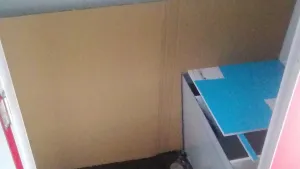 Der Deckel wird als statisch belastetes Bauteil aus dem gleichem Material entstehen, zusätzlich beschichtet mit einer Schichtstoffplatte wie auch die Küchenarbeitsplatte. Die Front wollte ich aus 3mm PVC-Schaum bauen, aber anders als die 10mm Platte ist die Oberfläche der 3mm Platte so weich, daß man sie mit dem Fingernagel einritzen kann.